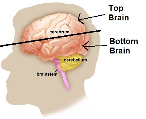 - When discussing "top brain" vs "bottom brain", the scientists who wrote the book are only refering to the top and bottom of the cerebrum